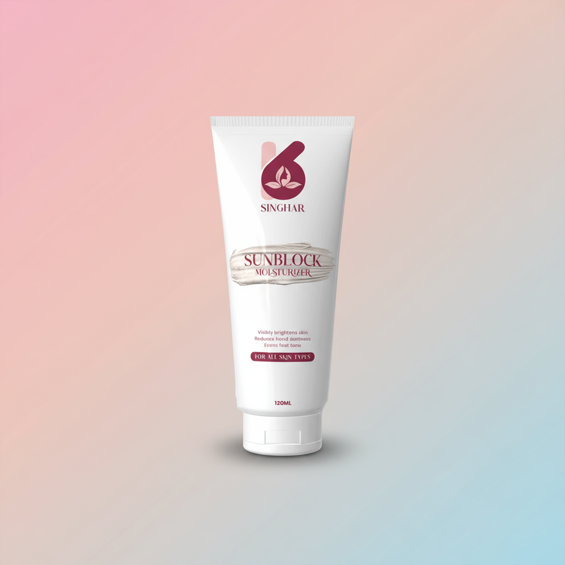 Singhar Sunblock Moisturizer is an essential daily skincare product designed to protect your skin from harmful UV rays while keeping it hydrated and smooth. This 2-in-1 formula combines the benefits of sun protection with the moisturizing properties your skin needs. Suitable for all skin types, it provides a non-greasy finish and long-lasting protection against sun damage.