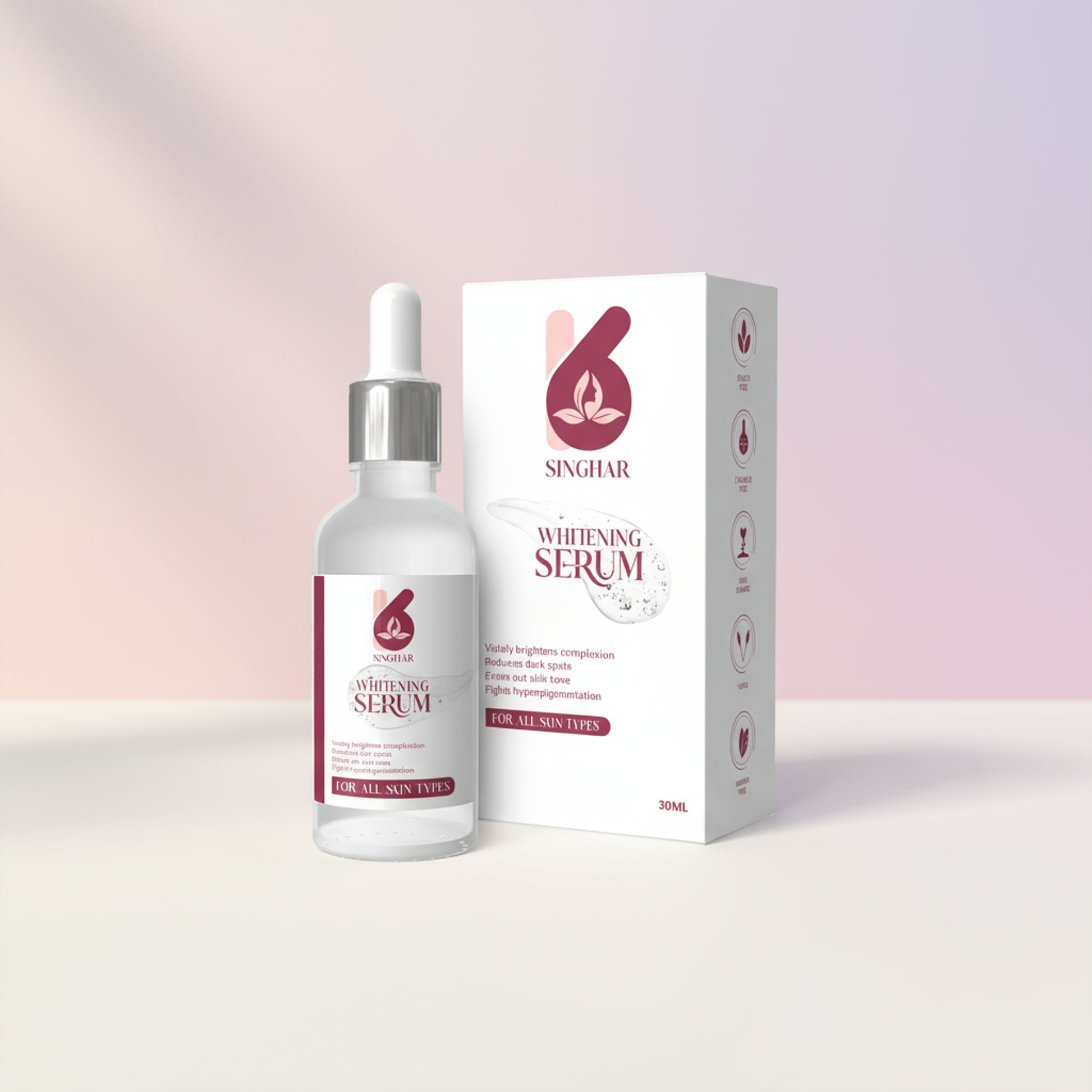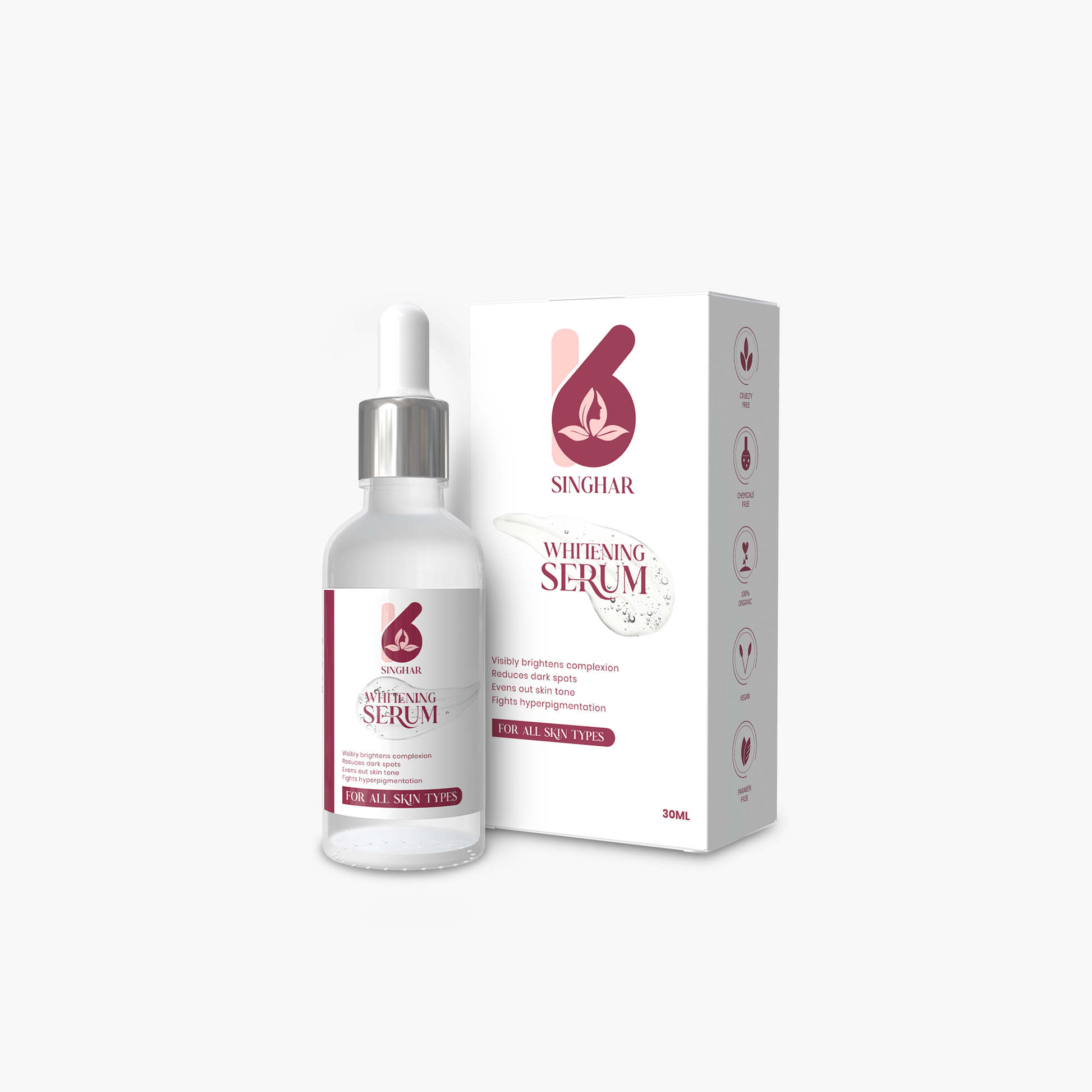 Singhar Whitening Serum is a potent, fast-absorbing formula designed to deeply hydrate and brighten the skin. Enriched with powerful ingredients, this serum works to reduce dark spots, even out skin tone, and restore radiance. Suitable for all skin types, it offers an advanced solution to tackle pigmentation issues and leave your skin looking brighter and smoother.